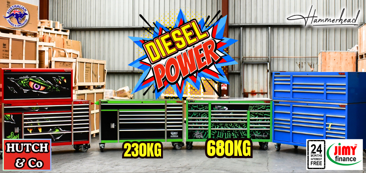 entry level 18 drawer 56″ wide ‘diesel power’ tool kit (black)From $5,150.00 Inc GST