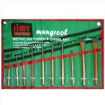 This Jimy Tools cold chisel and pin punch set includes 7 pin punches and 3 cold chisels. Forged from chrome Vanadium (Cr-V) hexagonal steel to help stop the tools from rotating in your hand, while being struck, and the working ends have been hardened and heat treated for durability. This 10 piece set is all wrapped up in Jimy’s own ‘Rip Stop’ canvas pouch making this an excellent quality set and value for money.