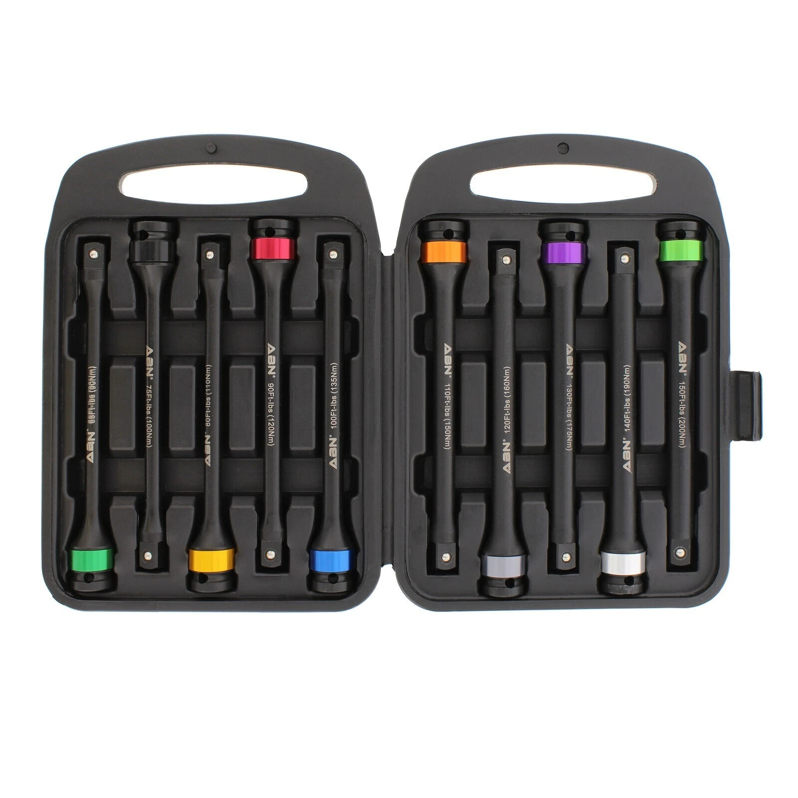 - 10-piece 1/2″ drive torque limiting extension bar set