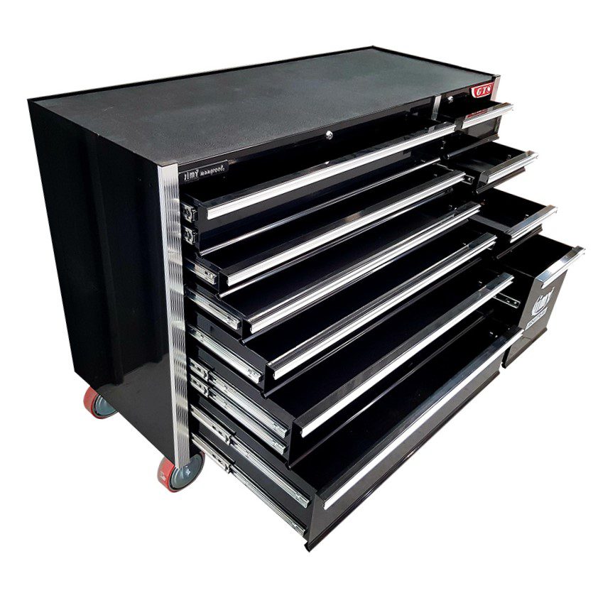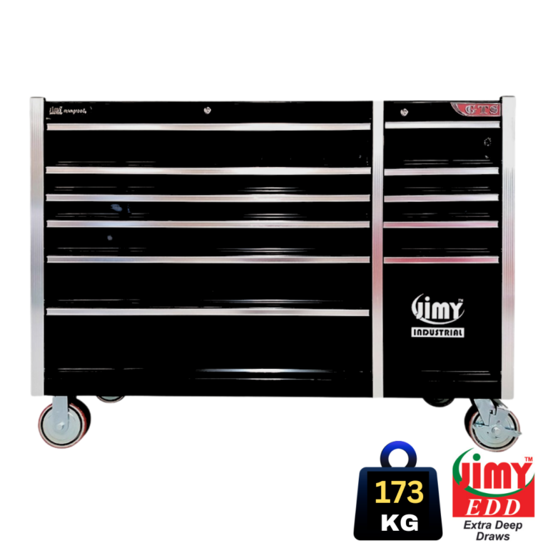 Jimy tool boxes are career spanning and built to last! Jimy tool boxes are fully modular to offer a number of storage combinations to fit your needs. With the extra deep 500mm drawers our 56” roller cabinet expands your storage capabilities and a massive 1250 kgs in weight load capacity. It features 11 drawers with full-width drawer handles, pre-cut drawer liners and a single integrated barrel lock. Durable full extension ball bearings and a tough power coated finish make this storage a perfect fit for your home garage or commercial workshop.