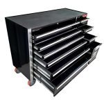 - 11 drawers for easy organisation of hand tools and everything else you need. The bottom right hand drawer is an extra large compartment for storage on bulky and heavy items such as larger power tools etc. Drawers are easily removable.