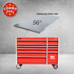 11 DRAWER 56” ROLLER CABINET (RED) + STAINLESS STEEL BENCH TOP (COMBO DEAL)