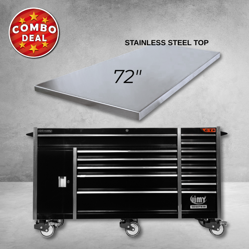 Jimy tool boxes are career spanning and built to last! Jimy tool boxes are fully modular to offer a number of storage combinations to fit your needs. With the extra deep 500mm drawers our 72” roller cabinet expands your storage capabilities and a massive 1680kgs in weight load capacity. It features 14 drawers with full-width drawer handles, pre-cut drawer liners and a single integrated barrel lock. Durable full extension ball bearings and a tough power coated finish make this storage a perfect fit for your home garage or commercial workshop.