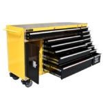 - 14 drawers for easy organisation of hand tools and everything else you need. The bottom left-hand cabinet is an extra large compartment for storage on bulky and heavy items such as larger power tools etc. Drawers are easily removable.