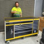 - 14 drawers for easy organisation of hand tools and everything else you need. The bottom left-hand cabinet is an extra large compartment for storage on bulky and heavy items such as larger power tools etc. Drawers are easily removable.