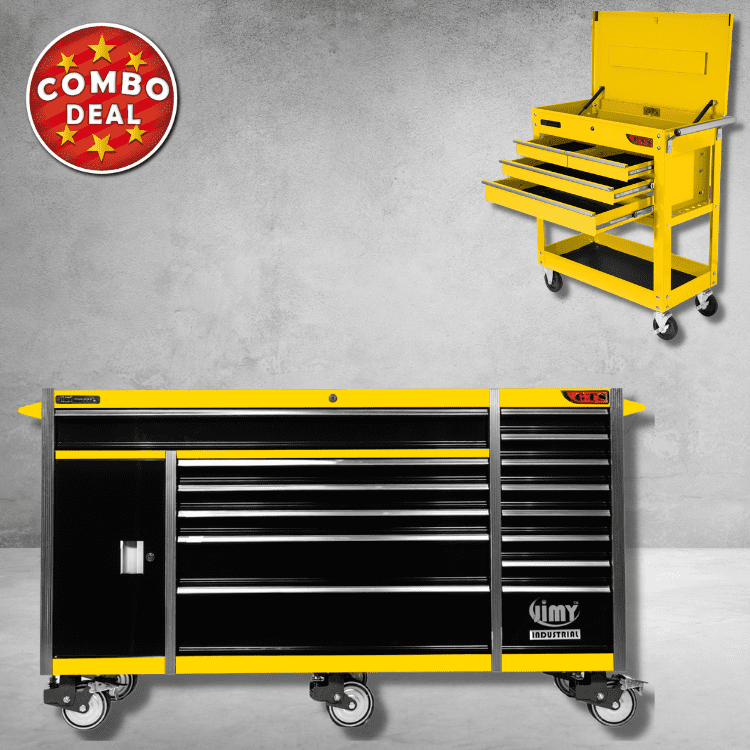 Jimy tool boxes are career spanning and built to last! Jimy tool boxes are fully modular to offer a number of storage combinations to fit your needs. With the extra deep 500mm drawers our 72” roller cabinet expands your storage capabilities and a massive 1680kgs in weight load capacity. It features 14 drawers with full-width drawer handles, pre-cut drawer liners and a single integrated barrel lock. Durable full extension ball bearings and a tough power coated finish make this storage a perfect fit for your home garage or commercial workshop.