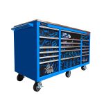 Jimy tool boxes are career spanning and built to last! Look no further with Australia’s best value for money pound for pound tool box. With the profoundly extra deep 700mm drawers our 72” roller cabinet expands your storage capabilities and has a massive 3250 kgs in weight load capacity. Including a heavy duty stainless steel workbench. It features 17 drawers with full-width click lock drawer handles, pre-cut drawer liners and a single integrated barrel lock. Durable full extension ball bearings and a tough power coated finish make this storage a perfect fit for your privileged home garage or more common commercial workshop.
