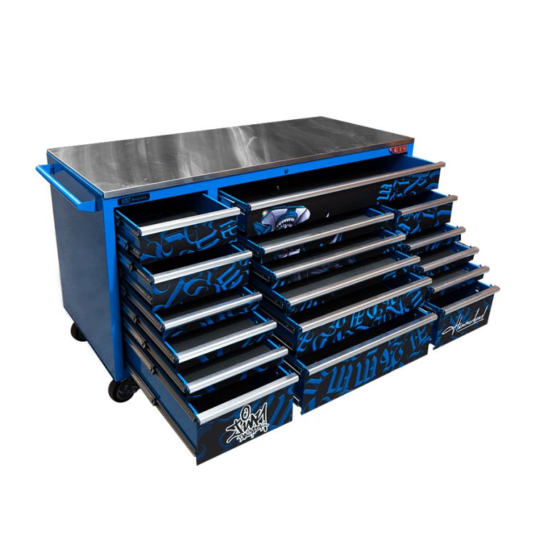 - 17 drawers for easy organisation of hand tools and everything else you need. Extra Deep Drawers to store more than your average toolbox. Double Drawer Slides on larger drawers to withhold your bulky heavier items. Drawers are easily removable.