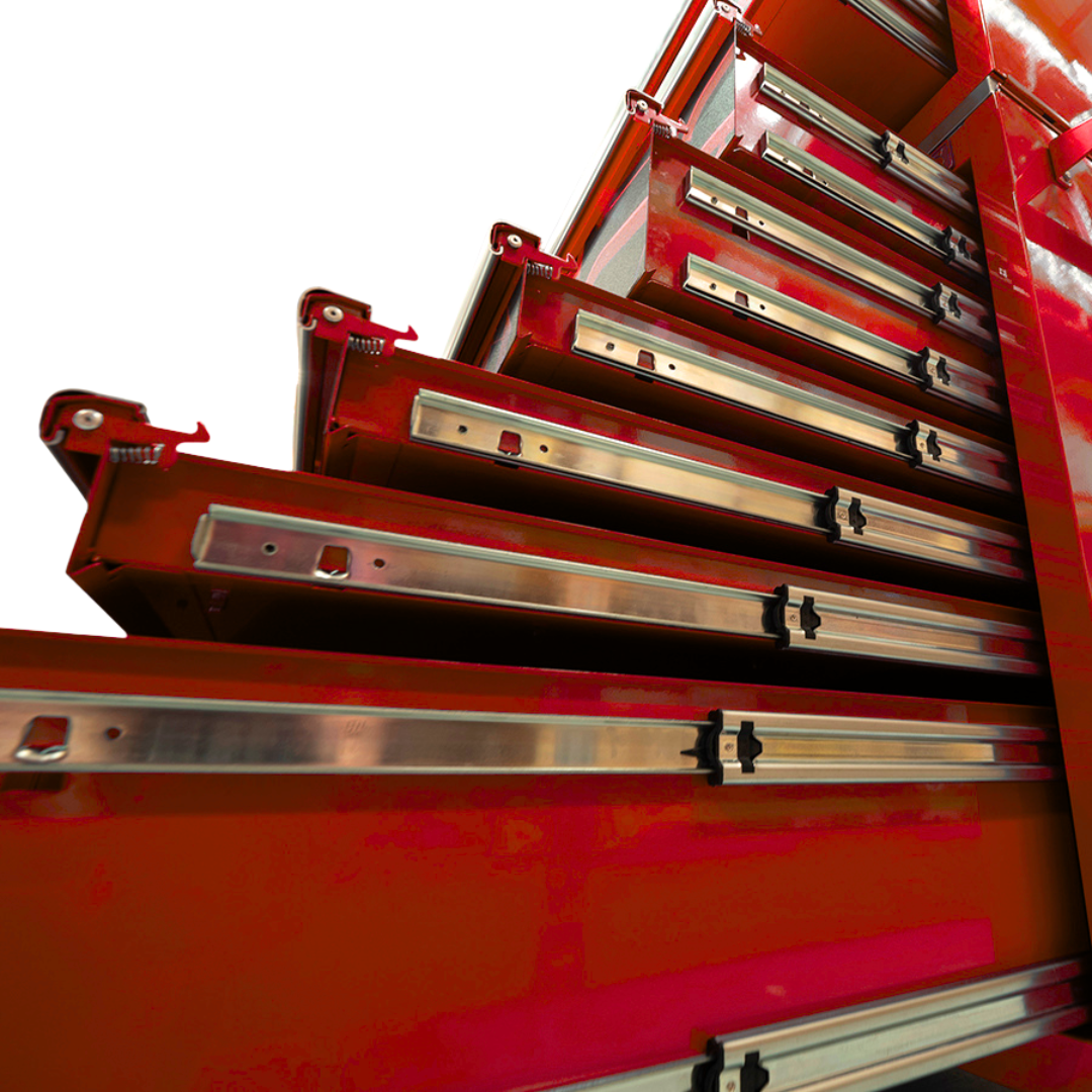 - 17 drawers for easy organisation of hand tools and everything else you need. Extra Deep Drawers to store more than your average toolbox. Double Drawer Slides on larger drawers to withhold your bulky heavier items. Drawers are easily removable.