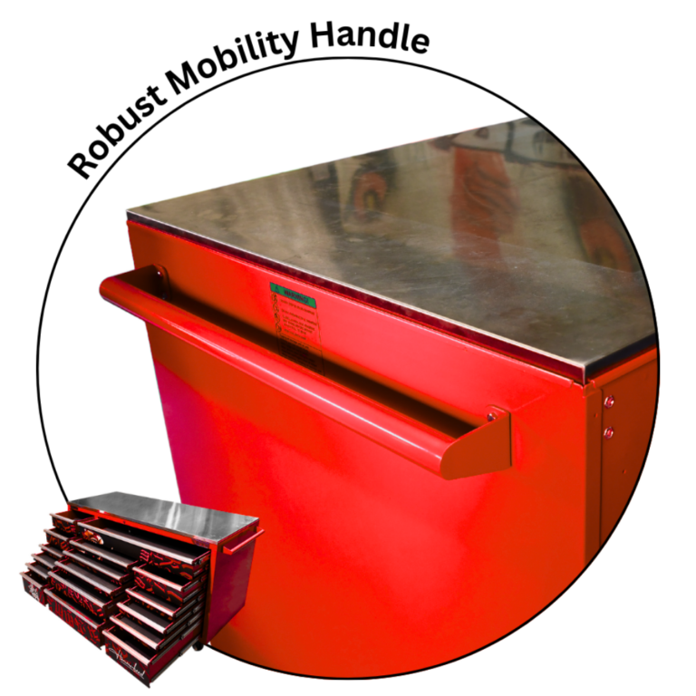 - Click Lock drawers for added security when manoeuvring your tool box around the workspace