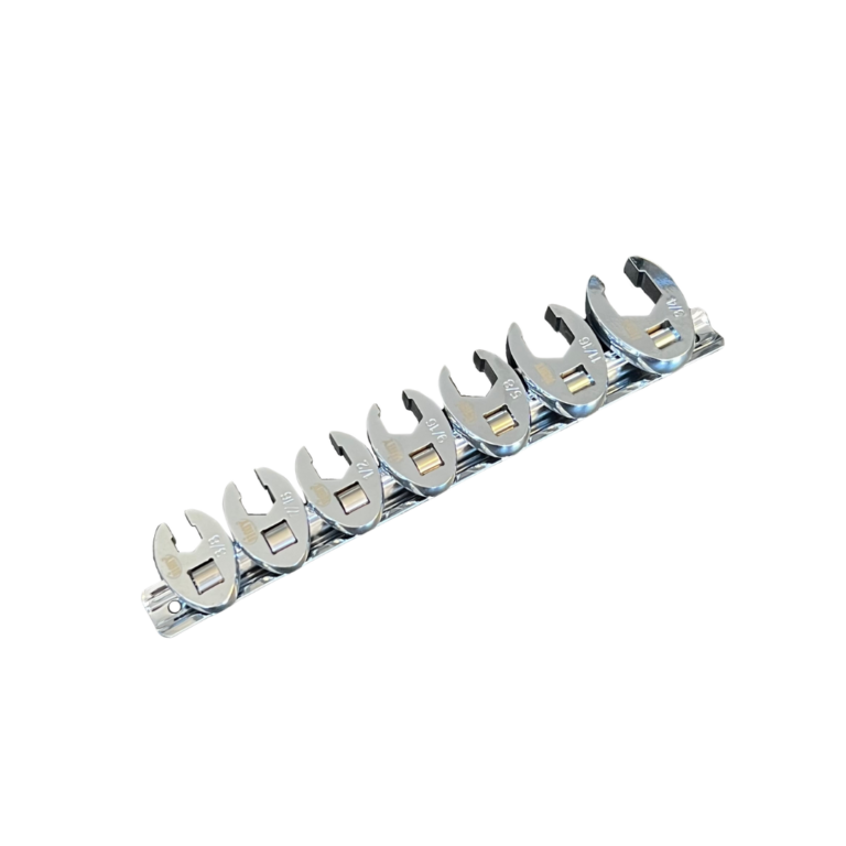 Crowfoot wrenches are open-end sockets or spanners that work where ordinary wrenches and sockets can’t. The flare nut design is perfect for use on soft fittings such as brass and aluminium as well as difficult to reach bolts and nuts. Flare nut ends are ideal for undoing hydraulic and pneumatic fittings on valve banks, injector lines with limited access and handy when reaching around obstacles.
