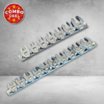 These specialty sockets are a must have in any mechanic or handyman’s tool kit. This crowfoot wrench set comes with a clip rail for easy storage and a high polish chrome finish for durability.