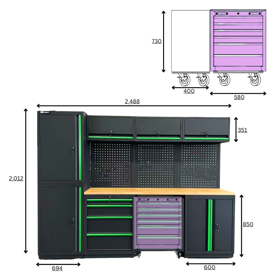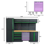 The Jimy Tools Garage Series Workstation is a premium storage and organisation solution designed to elevate your home garage or shed. Built with a full welded steel structure and finished in a scratch and stain-resistant black powder coat with green trim, this workstation is as tough as it is stylish.