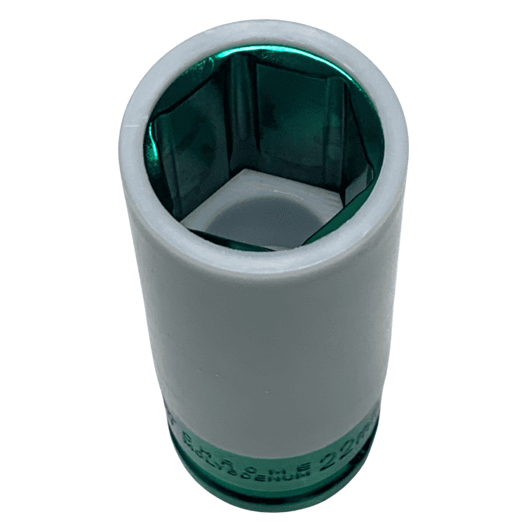 These thin walled impact sockets have a vinyl sleeve around them and a nylon insert inside them to protect your mag wheels or specialty rims and nuts from damage during removal and replacement. The sockets are designed for use with impact tools and are colour coded for ease of identification.