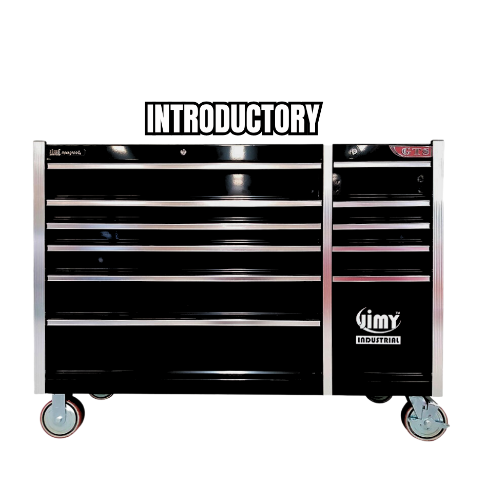 The 11 drawer “Introductory” tool kit from Jimy Tools offers a great range of tools for the tradesperson. The kit consists of an 11-drawer roller cabinet, powder coated with a tough industrial finish, 1.2mm thick steel, fully lockable with rear internal locking system, dual gas strut system for lid and ball bearing slide drawers with twin slides on the deeper drawers. Included are metric 4mm – 32mm and SAE 5/32” – 1-1/4” sockets and a full complement of 1/4”, 3/8” and 1/2” drive socket accessories including ratchets, breaker bars, extensions bars from 50mm up to 900mm long.