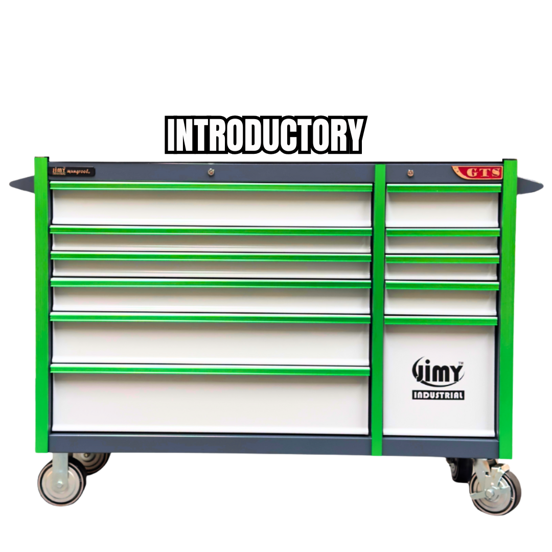 Jimy Tools’ Premium Titan design is here! With a gun-metal grey base, off-white drawers & emerald-green drawer handles & strips. This has to be one of the best looking toolboxes you’ll find in Australia!