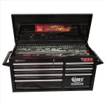 This tool kit from Jimy Tools what a good place to start if your new to the mechanical trades or an old hand this tool kit makes sense a full complement of sockets in 1/4” 3/8” and 1/2” drives with all the extension bars ratchets and breaker bars to suit and what about that 900mm long 1/2” drive extension bar. Also included are ROE spanners in metric and SAE, pliers, screwdrivers, Allen keys etc. check out the full list of contents below. With the high density foam drawer inserts you can easily see if you have left a tool on the job.