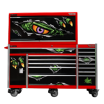 The 14 drawer “Introductory” hutch tool workshop from Jimy Tools offers a great range of tools for the professional mechanic. The kit consists of a hutch top box and an 11-drawer roller cabinet, all have been powder coated with a tough industrial finish, 1.2mm thick steel, fully lockable with rear internal locking system, dual gas strut system for the hutch and ball bearing slide drawers with twin slides on the deeper drawers. Included are metric 4mm – 32mm and SAE 5/32” – 1-1/4” sockets and a full complement of 1/4”, 3/8” and 1/2” drive socket accessories including ratchets, breaker bars, extensions bars from 50mm up to 900mm long.