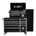 If you’re in the professional trade and looking for an excellent budget friendly option while maintaining a MEGA sized toolbox why not consider this 20 Drawer 42” Tool Chest and 56” Tool Trolley with a full length side locker addition. This tool kit is enormous with a full complement of sockets in ¼”, 3/8” & ½” drives with all the extension bars, ratchets, and breaker bars to suit, definitely don’t forget our 900mm long ½” drive extension bar. As well as all the spanners, pliers and hand tools you could wish for, check out the full list of contents below.