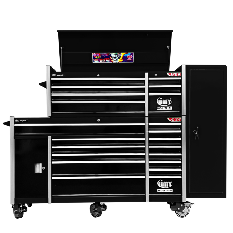 Jimy toolboxes are built to last! Tough industrial powder coating, 1.2mm gauge steel thickness, fully lockable & ball bearing slide rails on the drawers with twin slide rails on the deeper drawers.
