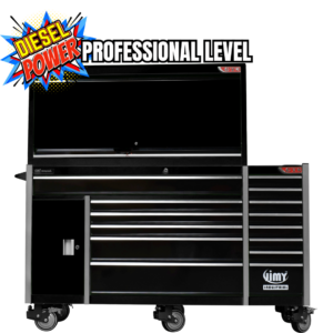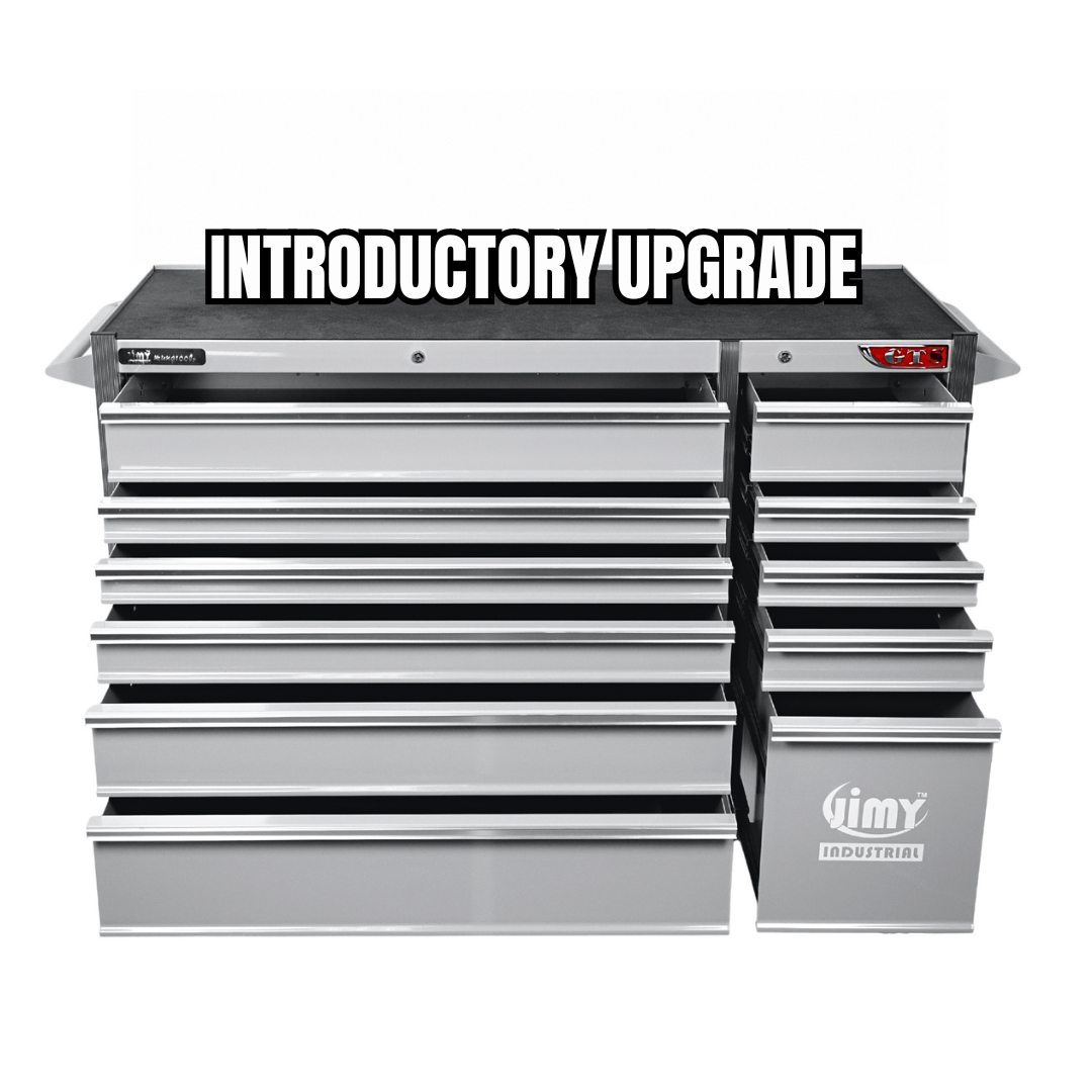 The 11 drawer “Introductory Upgrade” tool kit from Jimy Tools offers a great range of tools for the tradesperson. The kit consists of an 11-drawer roller cabinet, powder coated with a tough industrial finish, 1.2mm thick steel, fully lockable with rear internal locking system, dual gas strut system for lid and ball bearing slide drawers with twin slides on the deeper drawers. Included are metric 4mm – 32mm and SAE 5/32” – 1-1/4” sockets and a full complement of 1/4”, 3/8” and 1/2” drive socket accessories including ratchets, breaker bars, extensions bars from 50mm up to 900mm long.