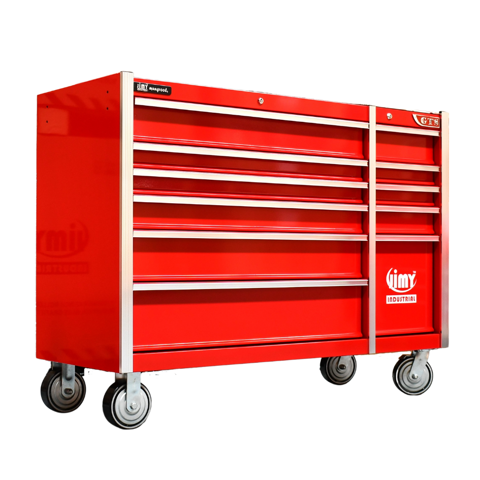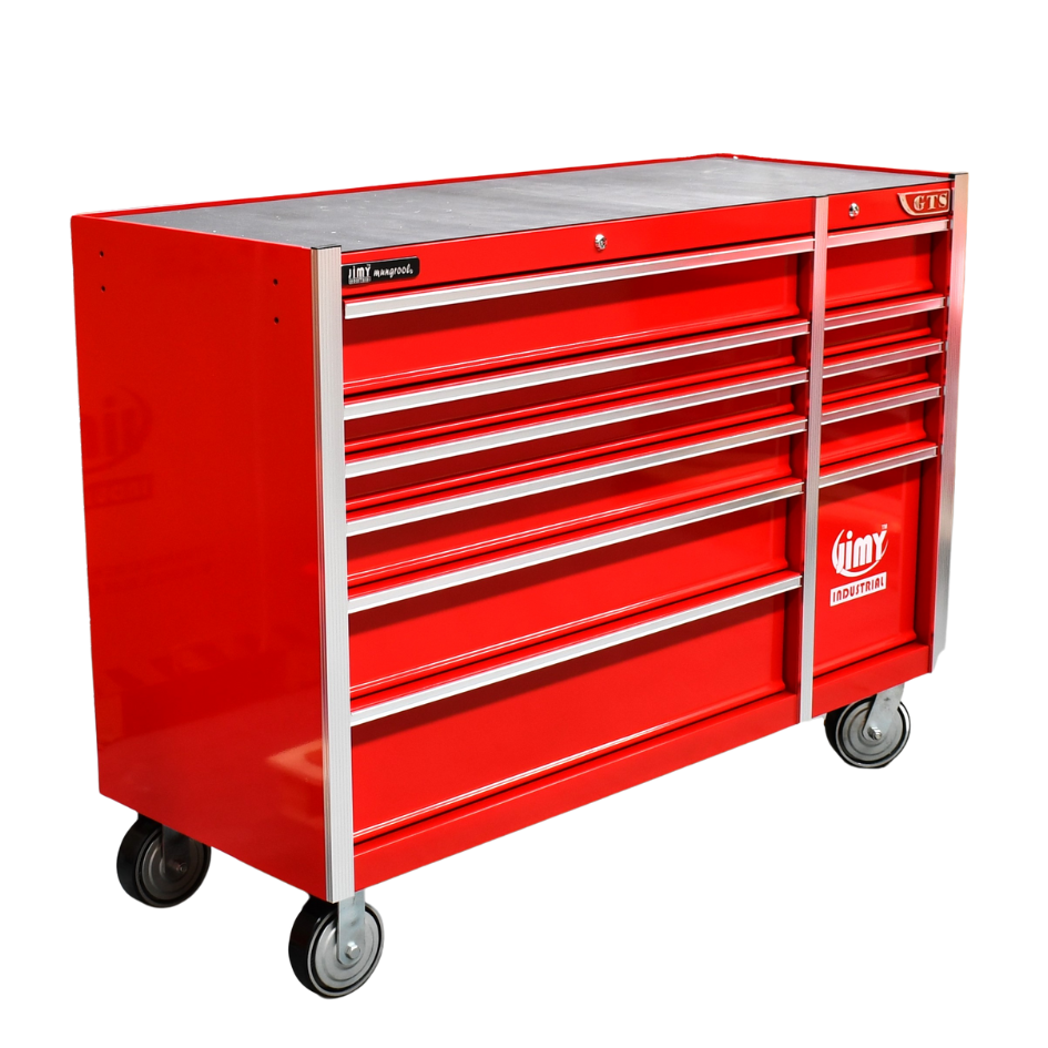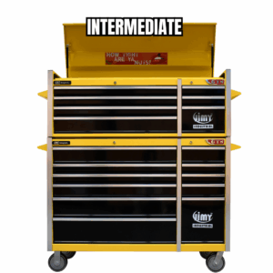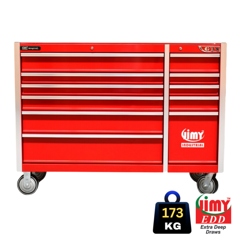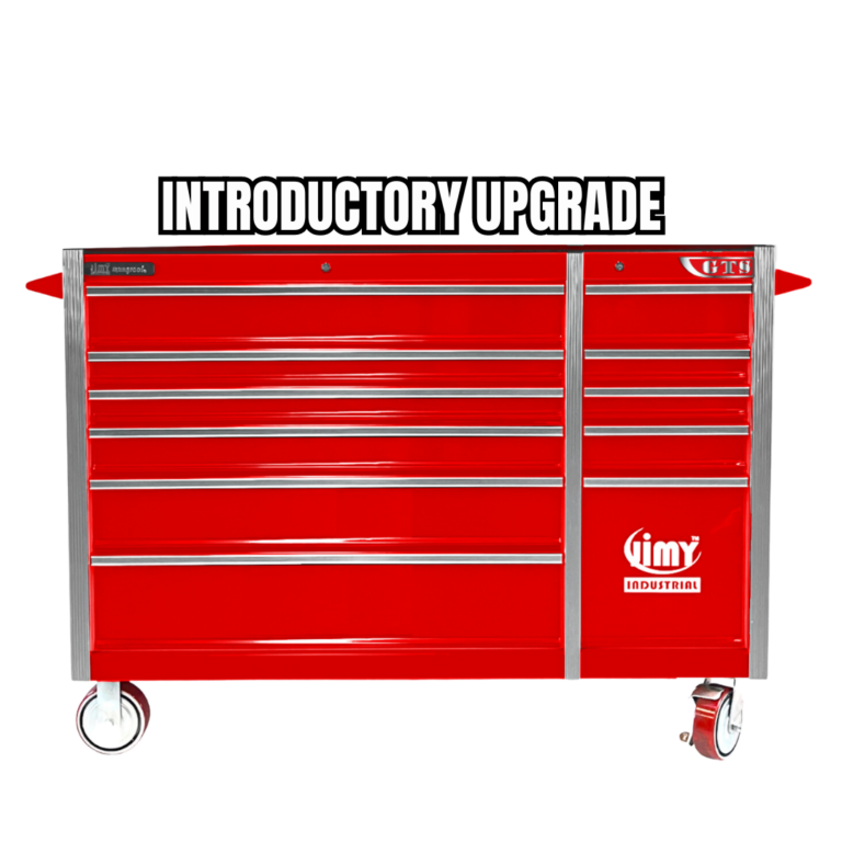 The 11 drawer “Introductory Upgrade” tool kit from Jimy Tools offers a great range of tools for the tradesperson. The kit consists of an 11-drawer roller cabinet, powder coated with a tough industrial finish, 1.2mm thick steel, fully lockable with rear internal locking system, dual gas strut system for lid and ball bearing slide drawers with twin slides on the deeper drawers. Included are metric 4mm – 32mm and SAE 5/32” – 1-1/4” sockets and a full complement of 1/4”, 3/8” and 1/2” drive socket accessories including ratchets, breaker bars, extensions bars from 50mm up to 900mm long.
