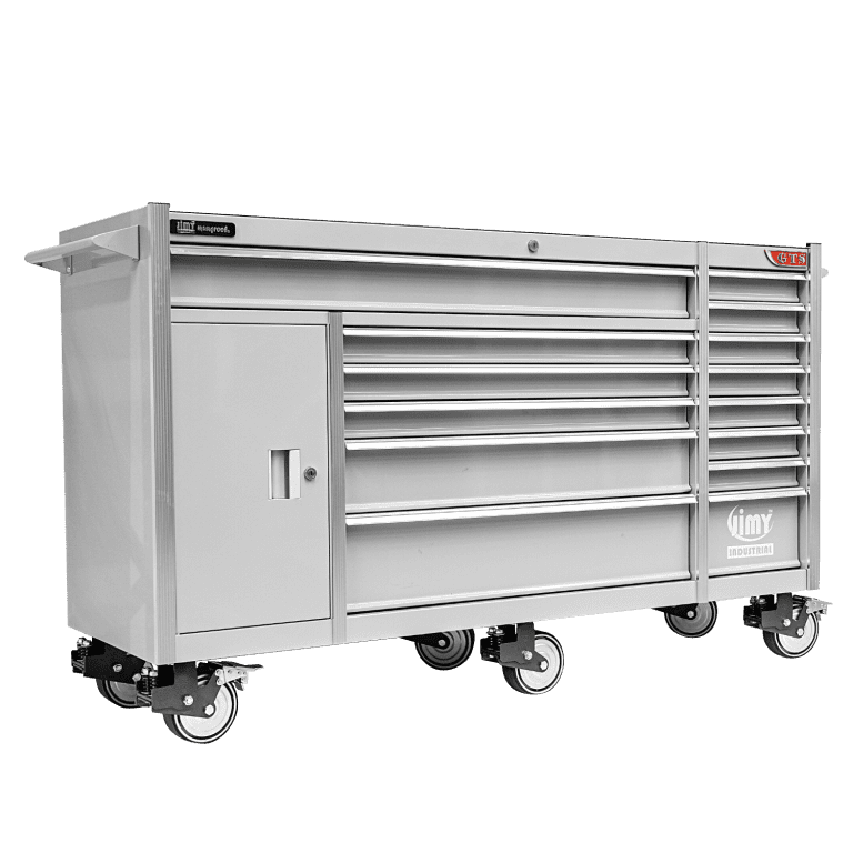 The Introductory GTS Tool Kit from Jimy Tools is perfect for the professional Tradesman or Apprentice who wants the biggest & best value for their money. What a good place to start if you’re new to the mechanical trades, or an old hand, this tool kit makes sense containing a full complement of sockets in 1/4” 3/8”,1/2” drives with all the extension bars ratchets and breaker bars to suit and what about that 900mm long extension bars. With the foam drawer inserts you can easily see if you have left a tool on the job. Jimy tool boxes are built to last! Tough industrial powder coating, 1.2mm gauge steel thickness, fully lockable & ball bearing slide rails on the drawers with twin slide rails on the deeper drawers.