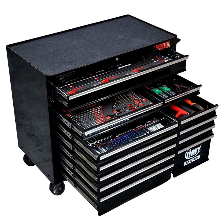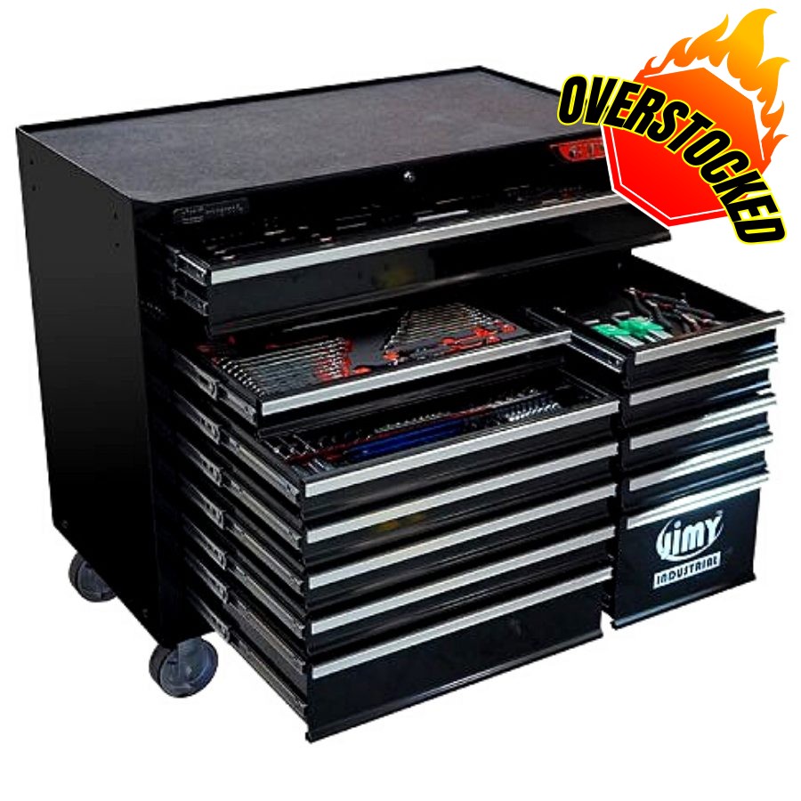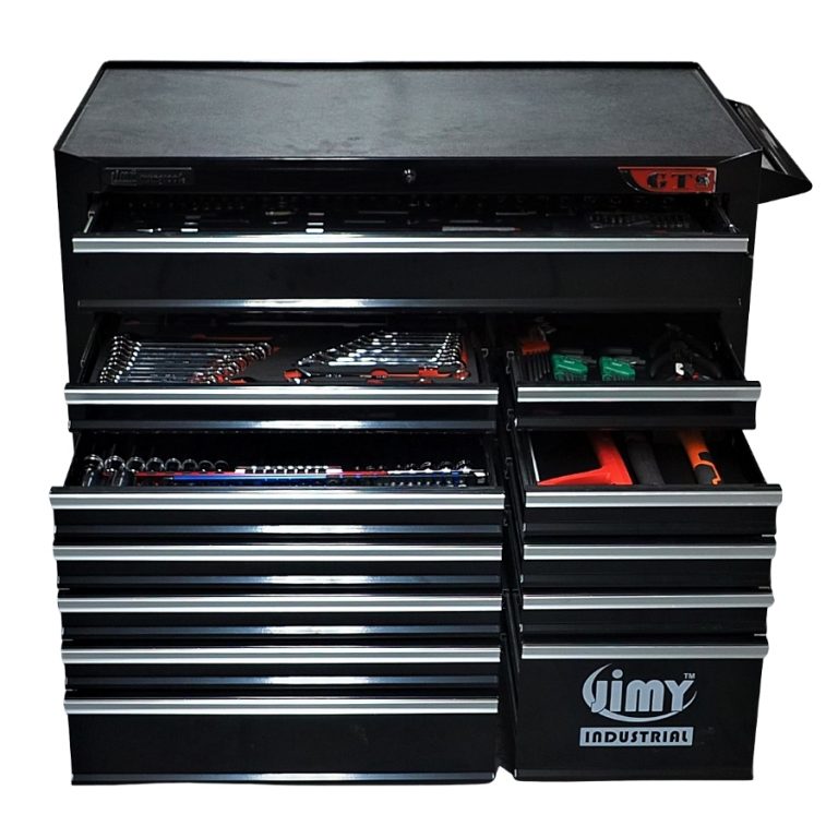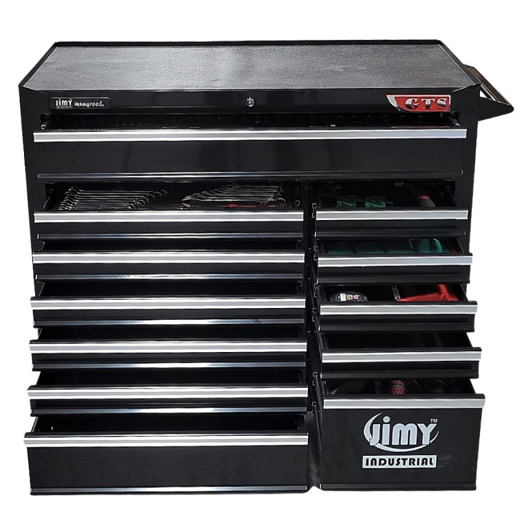 Jimy tool boxes are built to last with a tough industrial powder coating, 1.0mm thick steel, fully lockable with a rear internal locking system, dual gas strut system for lid & ball bearing slide drawers with twin slides on the deeper drawers.
