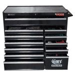 This 12 drawer Panel Beaters tool kit from Jimy Tools is the perfect place to start if your new to the mechanical Panel Beating trade. This tool kit consists of a 12 drawer roller cabinet with a full complement of sockets in 1/4” 3/8” & 1/2” square drives with all the extension bars, ratchets and breaker bars to suit and what about that 900mm extension. Also included are ROE spanners in metric and SAE, pliers, screwdrivers, Allen keys etc. check out the full list of contents below.
