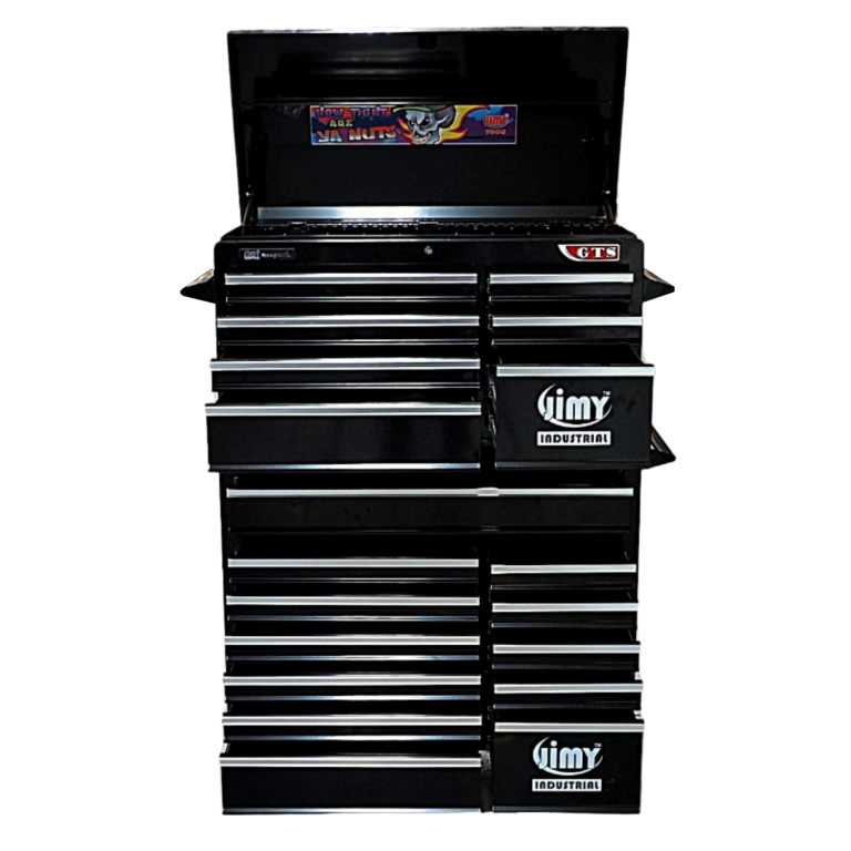 Jimy tool boxes are built to last with a tough industrial powder coating, 1.0mm thick steel, fully lockable with a rear internal locking system, dual gas strut system for lid & ball bearing slide drawers with twin slides on the deeper drawers.