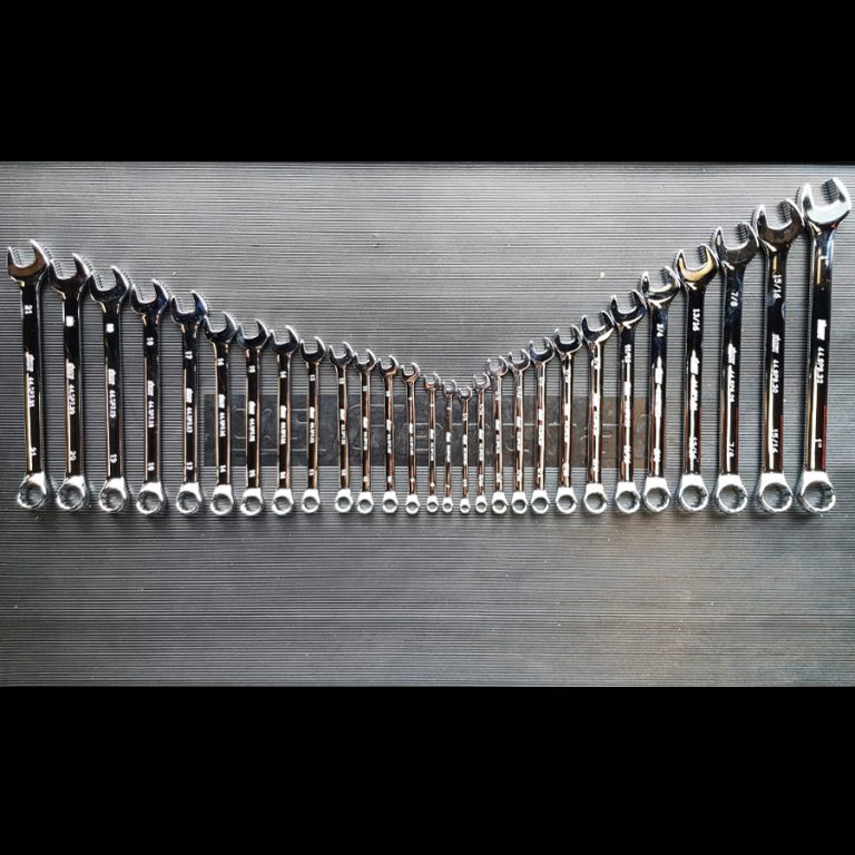 Every mechanic needs a nice set of spanners with enough variety to loosen or tighten any nut or bolt. The Jimy Tools 28 Piece Spanner Set gives you the flexibility you need. These spanners are open ended on one end and closed ring on the other. The spanner set comes in metric sizes ranging from 7mm to 21mm and in SAE sizes from 1/4” to 1”.