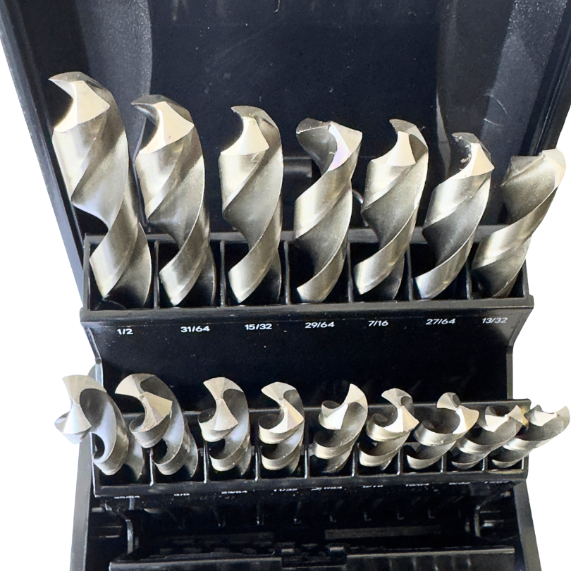 The Jimy Tools 29 piece SAE drill bit set has been developed for trade use and around the home. Featuring 118 degree split point design, these drill bits are self-centering which helps to minimise wandering when starting, ideally suited to hand held drilling in a wide range of ferrous & non-ferrous materials. The point design also reduces the amount of effort required to penetrate the material. Made from M2 high speed steel offering the best combination of strength, heat and wear resistance.