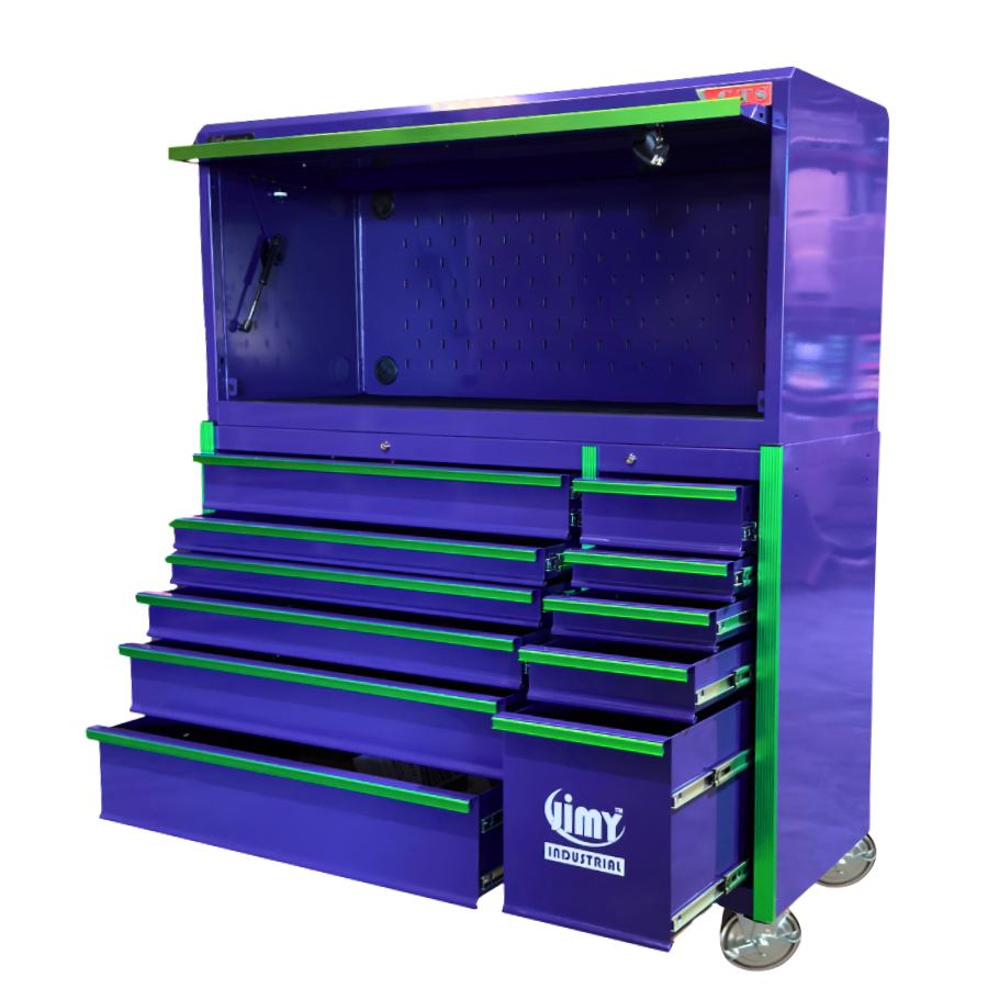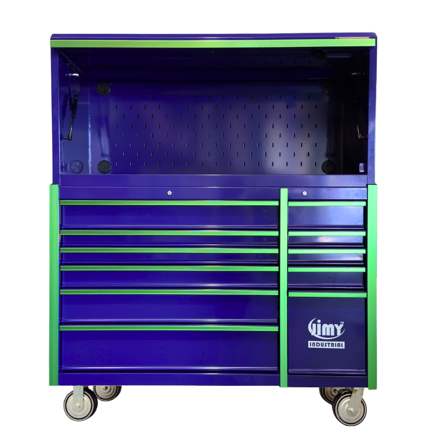 Jimy tool boxes are built to last! Tough industrial powder coating, 1.2mm gauge steel thickness, fully lockable & ball bearing slide rails on the drawers with twin slide rails on the deeper drawers.