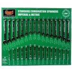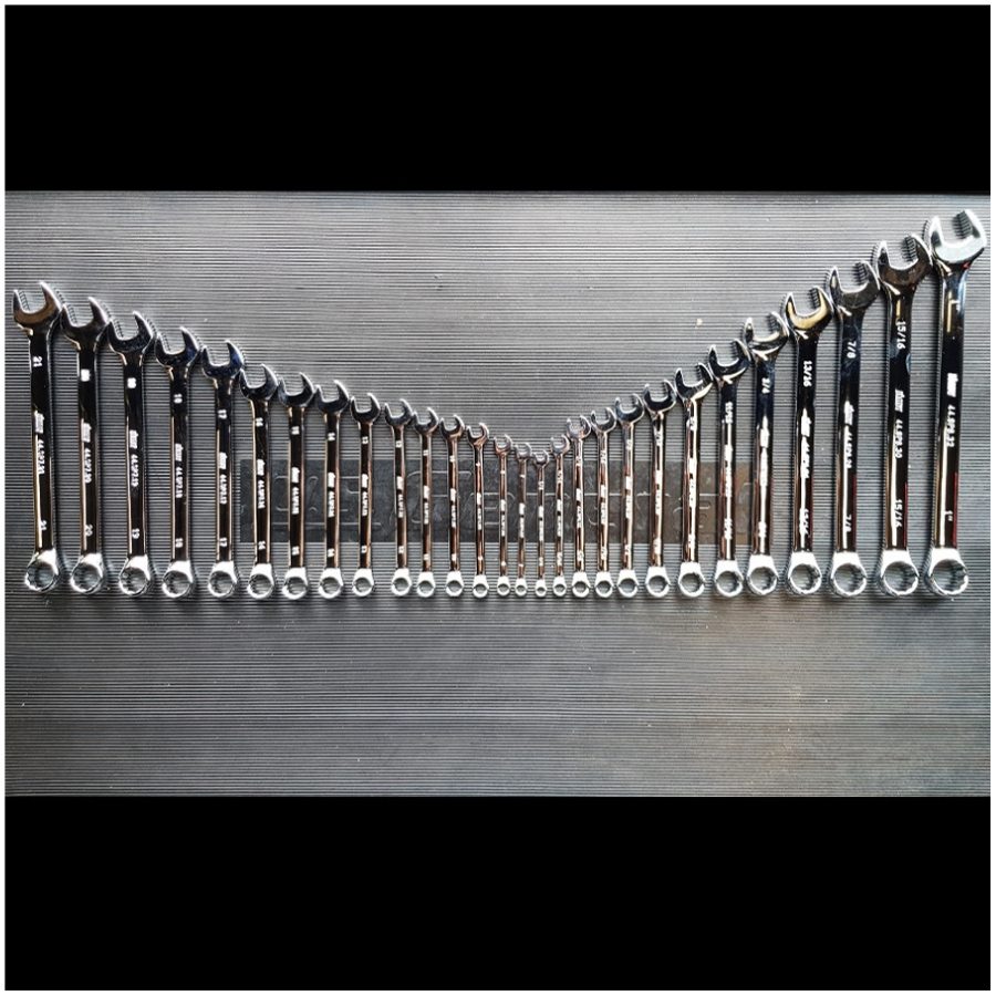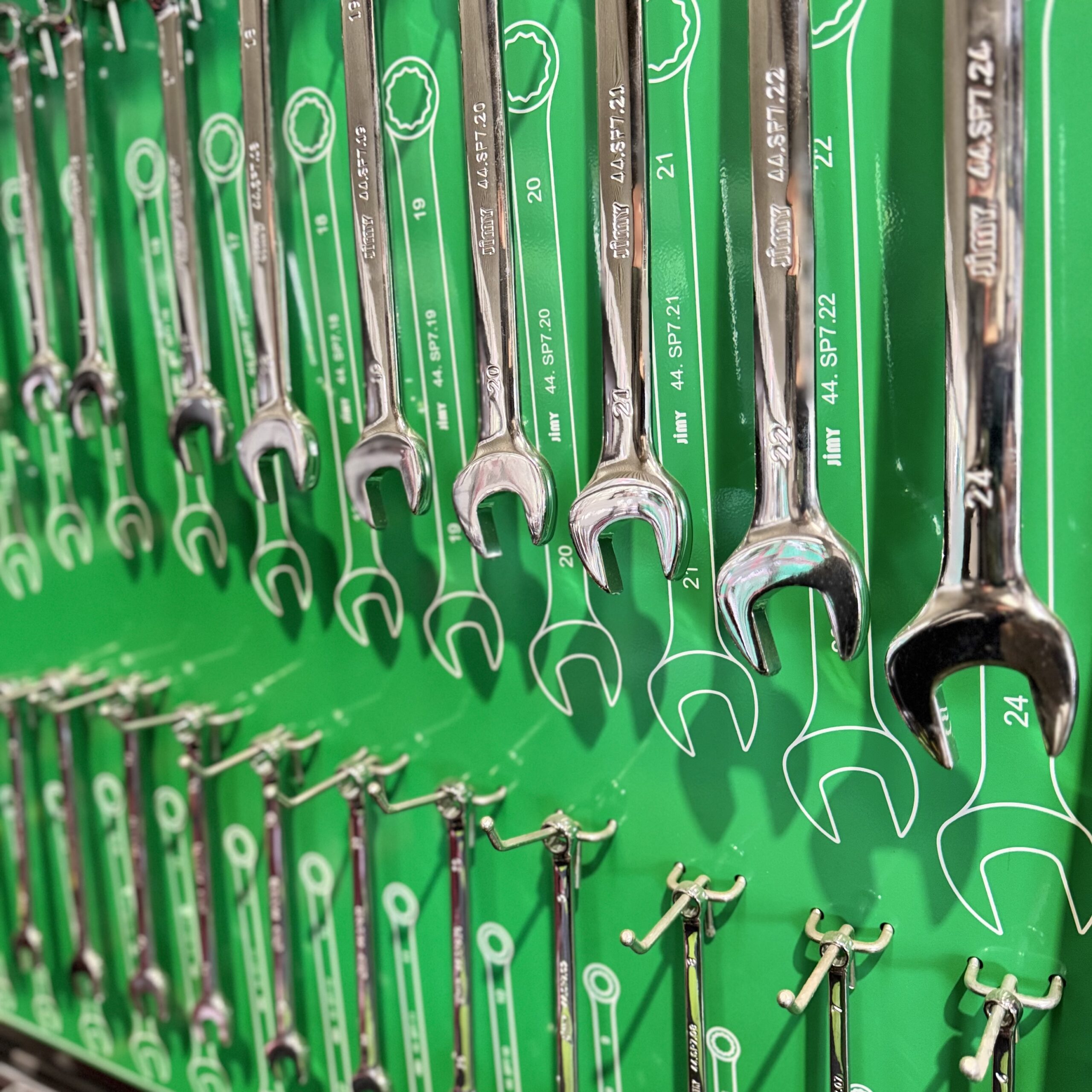 Every mechanic workshop or back shed needs a highly organised spanner board with enough variety of spanners to loosen or tighten any nut or bolt. The Jimy Tools 31 Piece Spanner board will be a feature display in your workshop and gives you the flexibility you need. These spanners are open ended on one end and closed ring on the other. The spanner shadow board comes in metric sizes ranging from 6mm to 24mm and in SAE sizes from 1/4” to 1”.