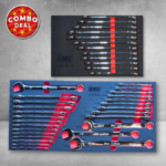 Upgrade your toolbox with the complete Jimy Tools Spanner EVA Tray Combo, combining both standard and large-format spanners into one organised, workshop-ready setup. This 38-piece set covers everything from small precision work through to heavy-duty applications, with both Metric and SAE sizes included. Built from high-quality Chrome Vanadium (Cr-V) steel and neatly laid out in durable EVA foam trays, this combo keeps your workspace clean, efficient, and job-ready at all times.
