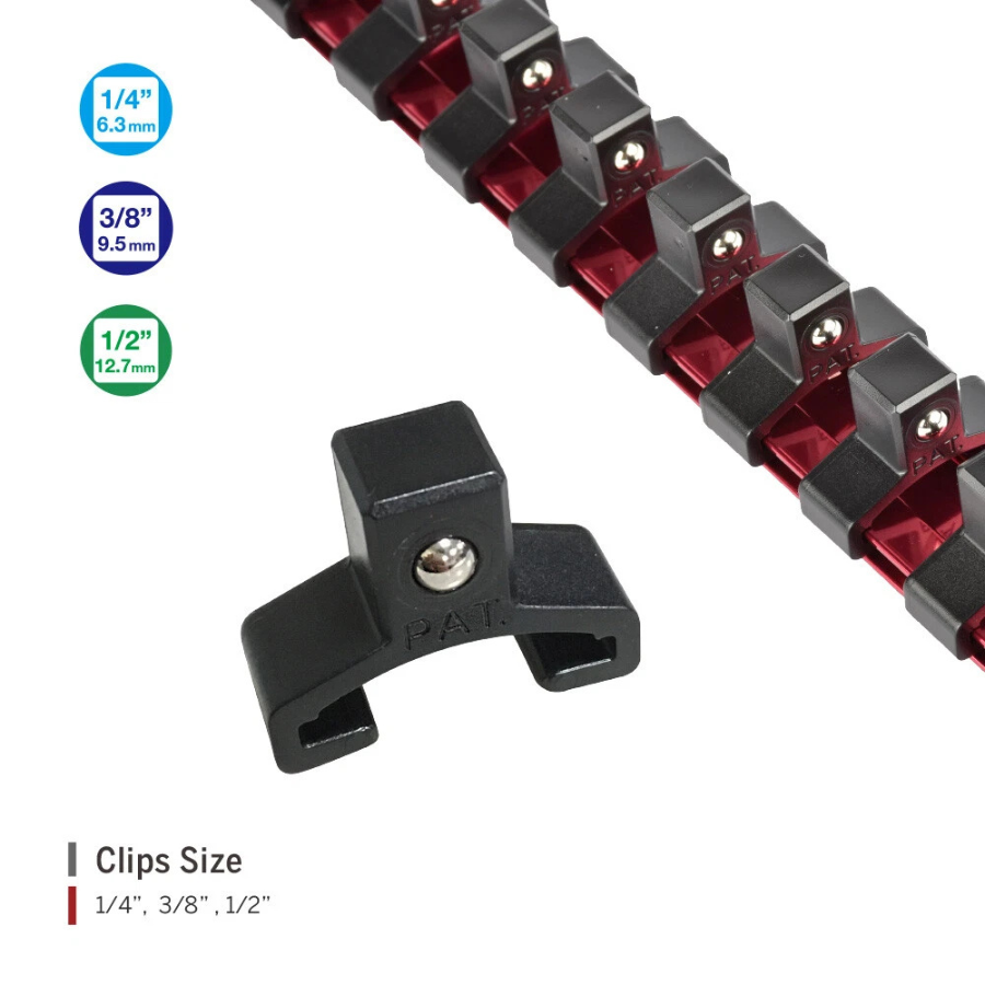 • 1 × 3/8″ Drive Socket Rail (18 Clips)