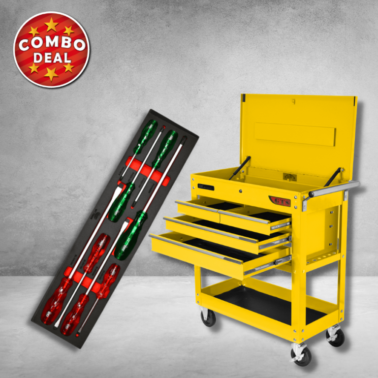 4 DRAWER 33” DIAGNOSTIC TOOL CART (YELLOW) + 8PC SCREWDRIVER TRAY (COMBO DEAL)