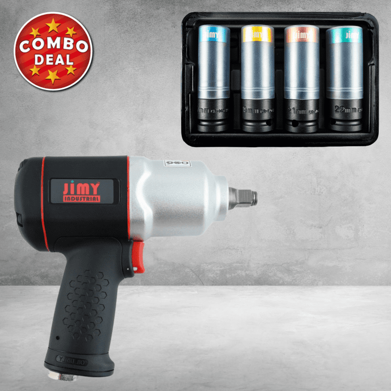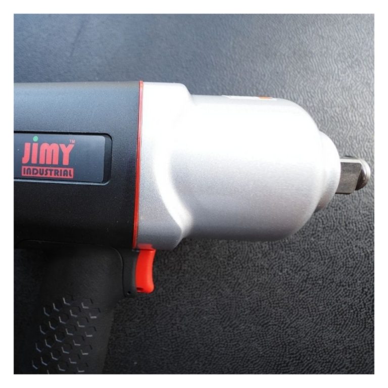 The Jimy Tools 1/2” drive air impact wrench develops 881Nm (650 Ft/Lbs) of torque in forward and reverse making this impact wrench suitable for most tasks around the workshop including wheel nut removal, chassis maintenance, suspension and other major component disassembly. This air impact wrench has a twin hammer mechanism that delivers higher torque with less vibration and a heavy duty composite housing for durability yet is lightweight to reduce fatigue! The impact wrench features a throttle trigger for precise speed control, 3 torque settings in forward with 1 in reverse and a comfortable non slip grip.