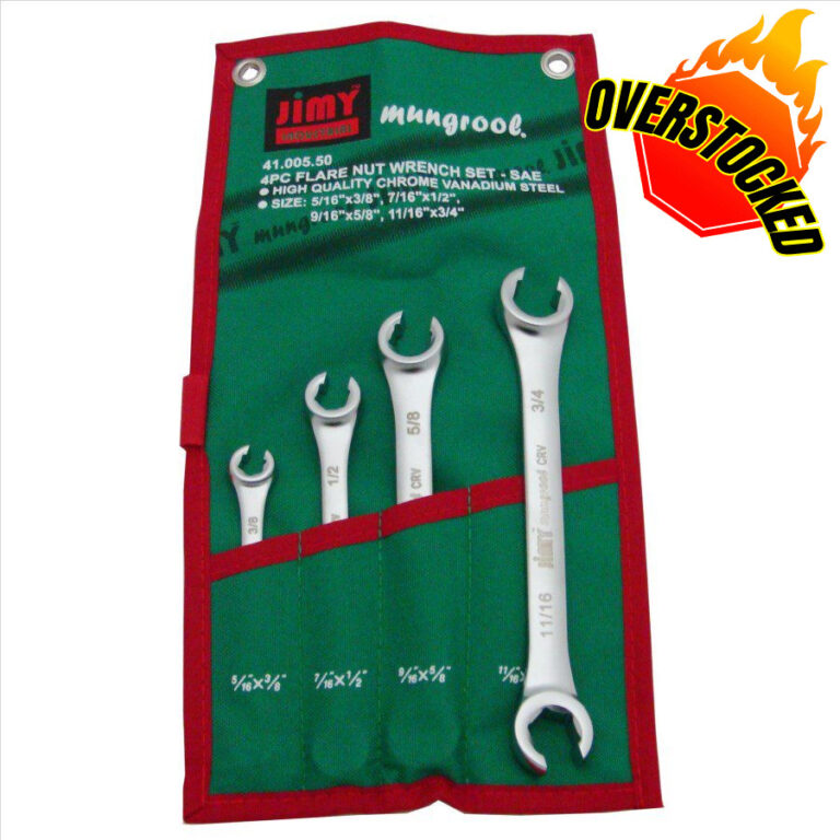 This Jimy Tools 4 piece SAE flare nut set has a standard open end ring spanner at each end of the spanner. Flare nut spanners are used to remove or replace fuel, hydraulic or brake-line fittings so the risk of rounding off the fittings is reduced. This 4 piece set is manufactured from quality chrome Vanadium (Cr-V) steel that is polished to a mirror finish and all wrapped up in Jimy’s own ‘Rip Stop’ canvas spanner roll makes this an excellent quality set and value for money.