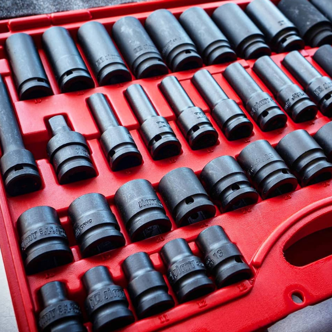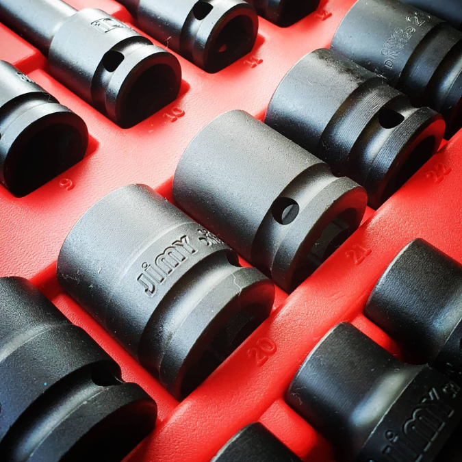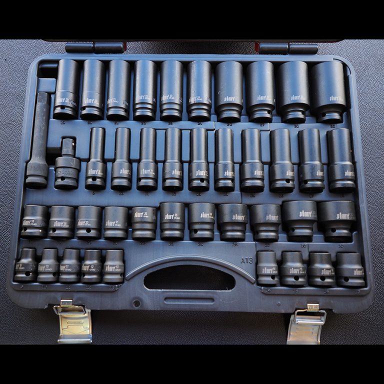 The Jimy Tools 42 Piece Deep and Standard Depth Impact Socket Set is made from CrMo trade quality steel with high tensile strength to ensure that you can tackle even the toughest nuts and bolts with confidence. This 42 piece set comes with metric deep and standard depth sockets ranging in size from 10mm up to 32mm and work with any 1/2″ square drive impact wrench, ratchet, or adapter.
