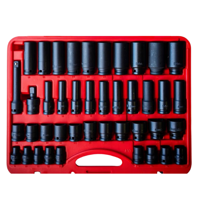 - Standard & deep socket sizes : 9mm, 10mm,11mm, 12mm, 13mm, 14mm, 15mm, 16mm, 17mm, 18mm, 19mm, 20mm, 21mm, 22mm, 23mm, 24mm, 26mm, 27m, 30mm, 32mm.