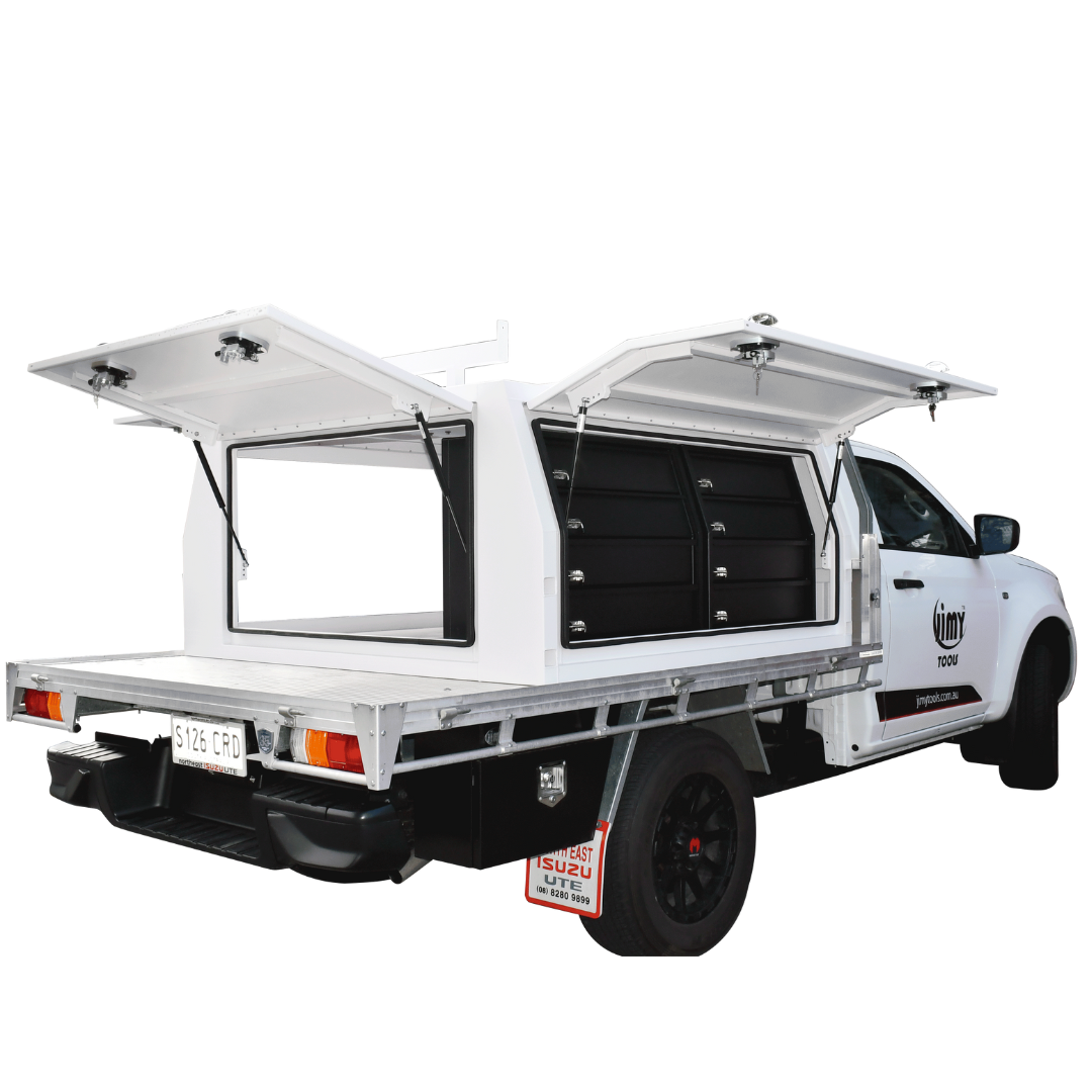 The Jimy Industrial Canopy will be sure to impress you with their quality & toughness. Each gull wing door is surrounded with internal heavy duty rubber seals making the canopy weatherproof to handle the tough Aussie conditions.