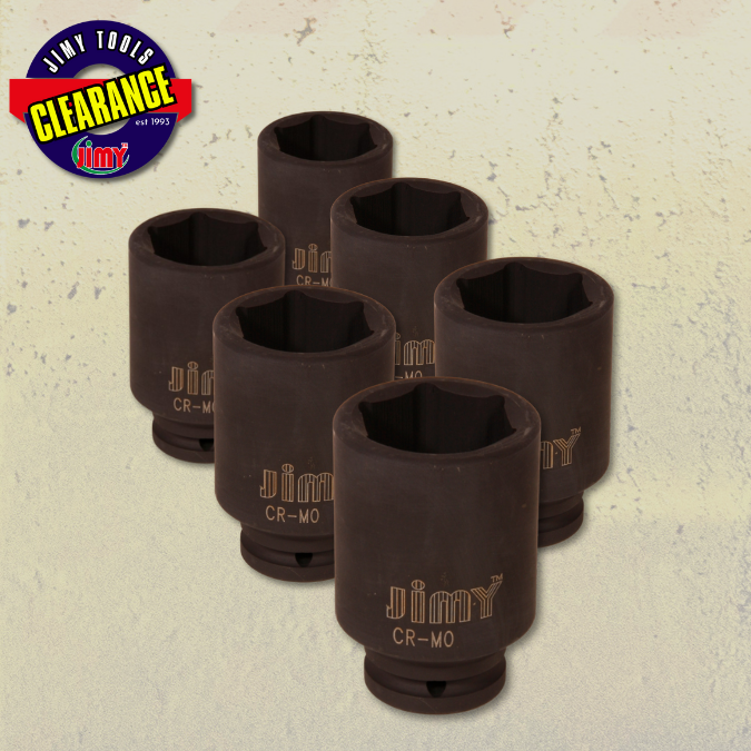 The Jimy Tools deep impact socket set is made from chrome molybdenum alloy steel (Cr-Mo) tempered and hardened for exceptional strength and durability to ensure that you can tackle even the toughest nuts and bolts. This set comes with deep sockets and works with any 1? square drive impact wrench, ratchet, or adapter. Designed with air tools in mind, these sockets are perfect for any tradesman or air tool user.