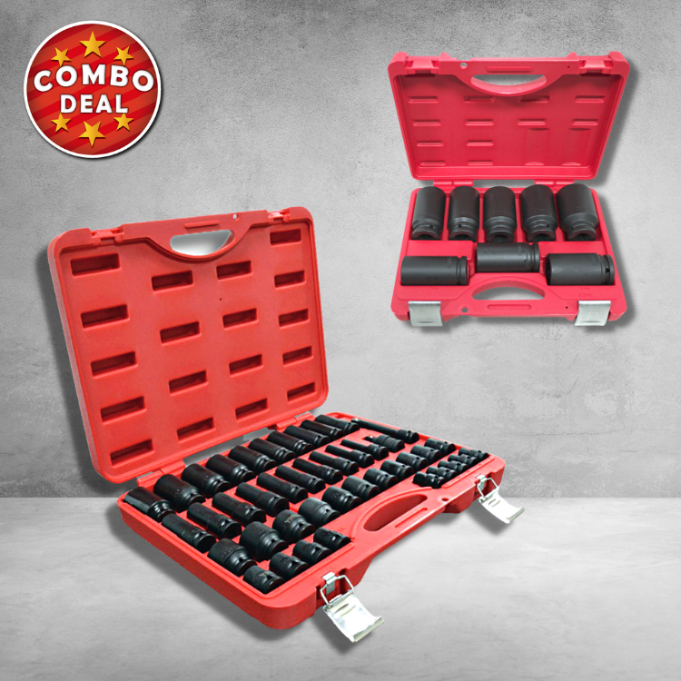 The Jimy Tools 42 Piece Deepand Standard Depth Impact Socket Set is made from CrMo trade quality steel with high tensile strength to ensure that you can tackle even the toughest nuts and bolts with strength and confidence. This 42 piece set comes with metric deep and standard depth sockets ranging in size from 10mm all the way up to 32mm and works with any 1/2″ wrench, ratchet, or adapter.