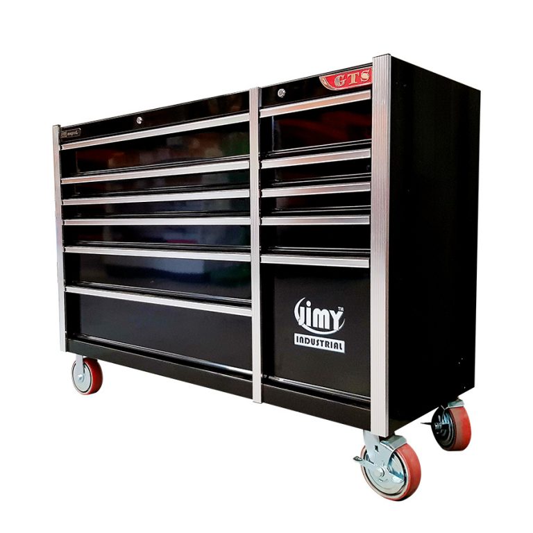 The 11 drawer intermediate mechanic’s tool kit from Jimy Tools offers a wide range of tools for the trade’s person. The kit consists of a 11-drawer drawer roller cabinet that have been powder coated with a tough industrial finish, 1.0mm thick steel, fully lockable with rear internal locking system, dual gas strut system for lid and ball bearing slide drawers with twin slides on the deeper drawers.