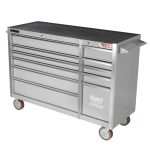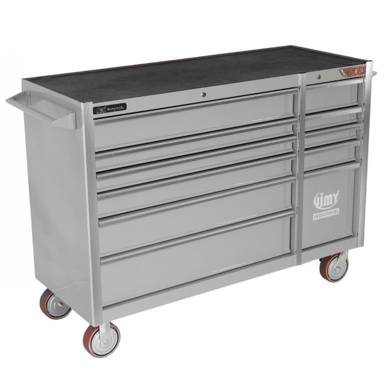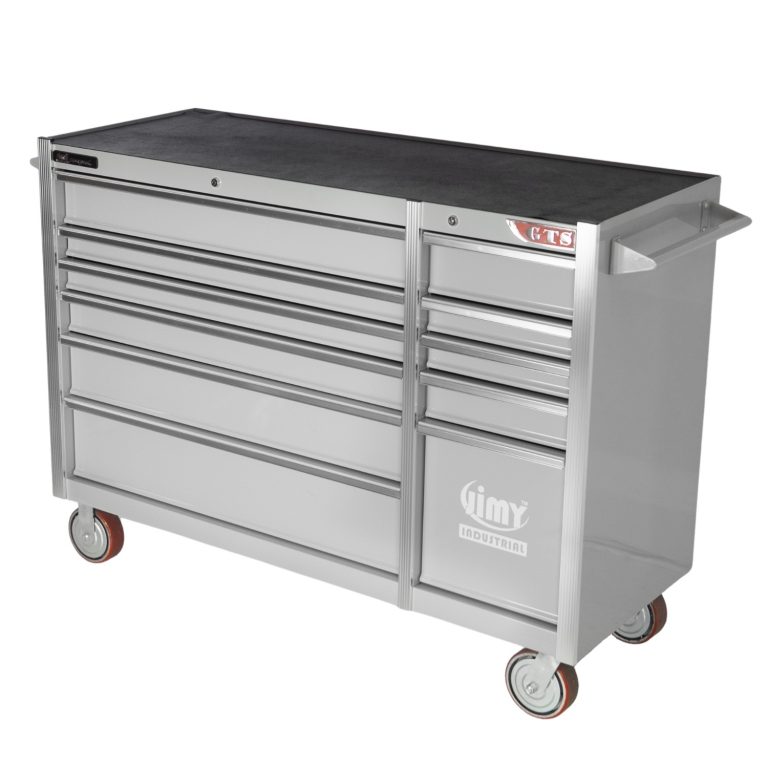 The 11 drawer intermediate mechanic’s tool kit from Jimy Tools offers a wide range of tools for the trade’s person. The kit consists of a 11-drawer drawer roller cabinet that have been powder coated with a tough industrial finish, 1.0mm thick steel, fully lockable with rear internal locking system, dual gas strut system for lid and ball bearing slide drawers with twin slides on the deeper drawers.
