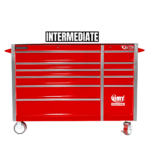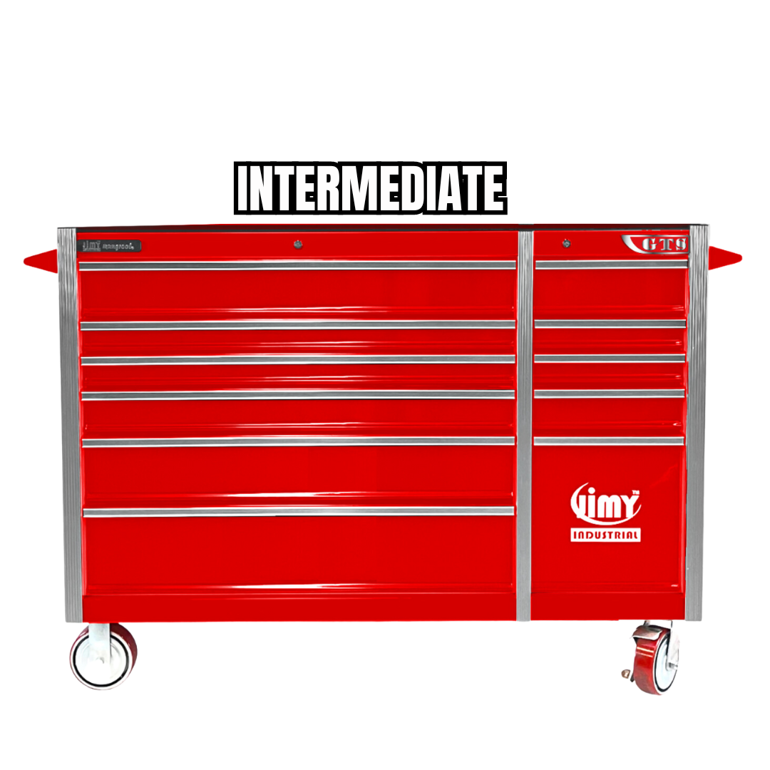 The 11 drawer intermediate mechanic’s tool kit from Jimy Tools offers a wide range of tools for the trade’s person. The kit consists of a 11-drawer drawer roller cabinet that have been powder coated with a tough industrial finish, 1.0mm thick steel, fully lockable with rear internal locking system, dual gas strut system for lid and ball bearing slide drawers with twin slides on the deeper drawers.