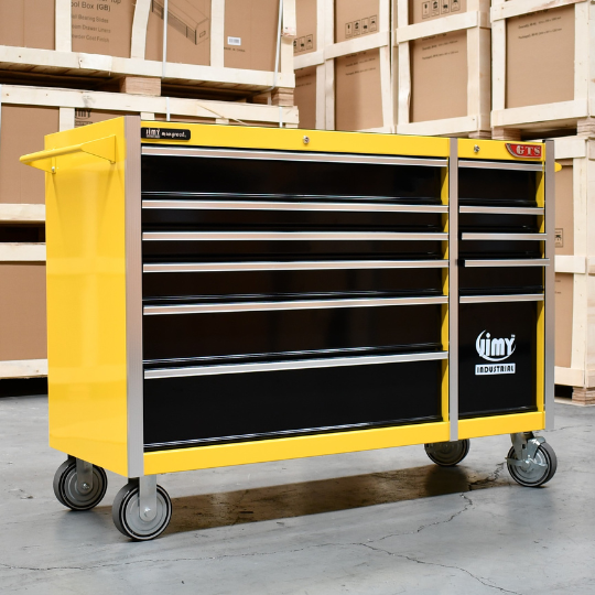 The 11 drawer intermediate mechanic’s tool kit from Jimy Tools offers a wide range of tools for the trade’s person. The kit consists of a 11-drawer drawer roller cabinet that have been powder coated with a tough industrial finish, 1.0mm thick steel, fully lockable with rear internal locking system, dual gas strut system for lid and ball bearing slide drawers with twin slides on the deeper drawers.