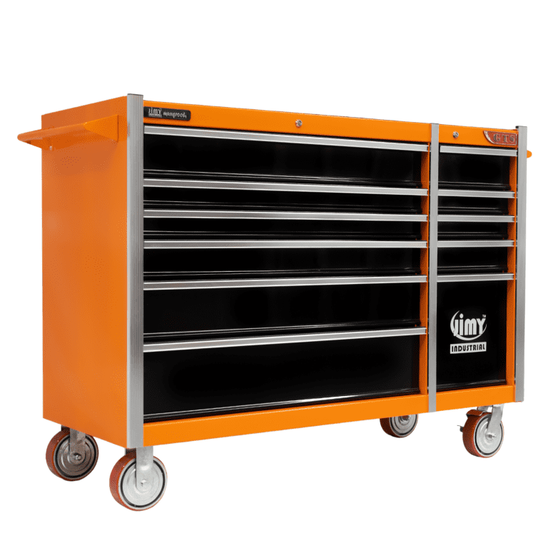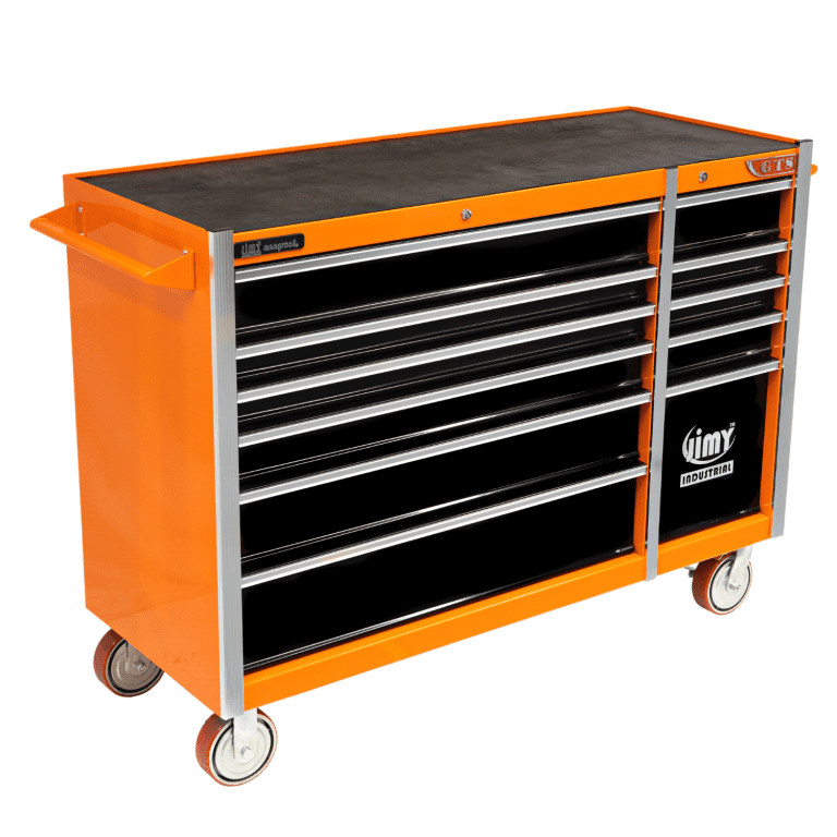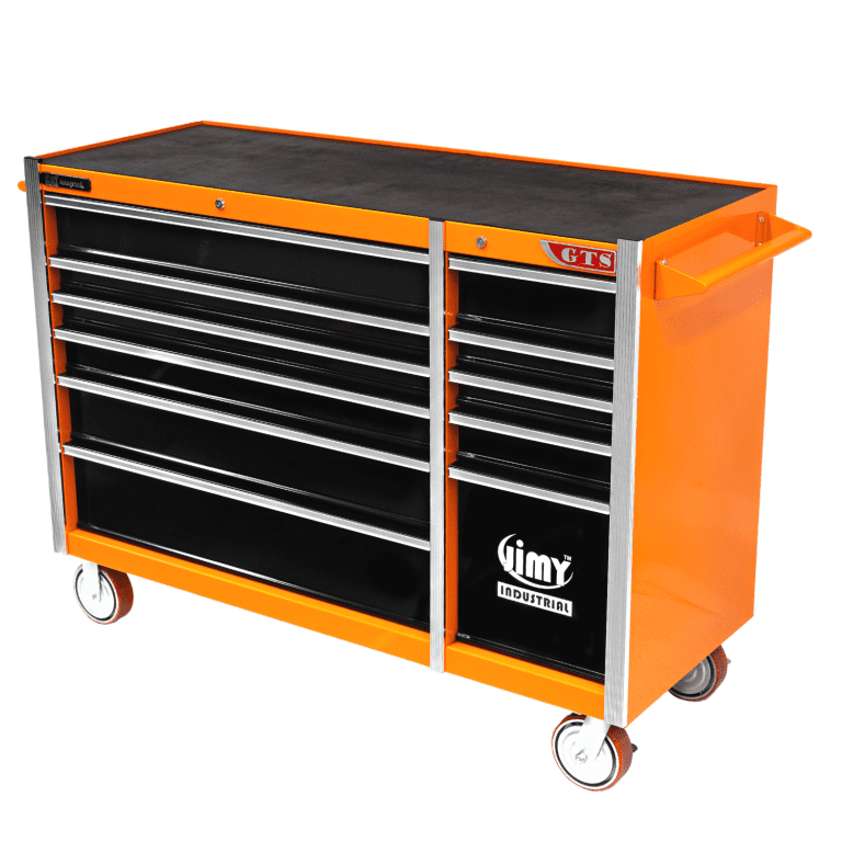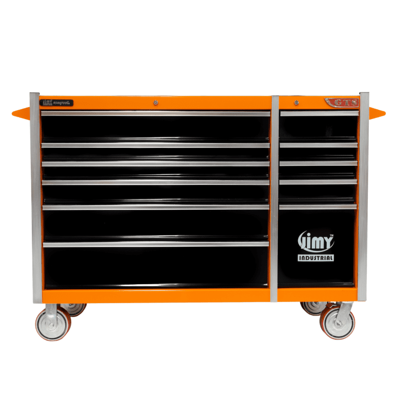 The 11 drawer intermediate mechanic’s tool kit from Jimy Tools offers a wide range of tools for the trade’s person. The kit consists of a 11-drawer drawer roller cabinet that have been powder coated with a tough industrial finish, 1.0mm thick steel, fully lockable with rear internal locking system, dual gas strut system for lid and ball bearing slide drawers with twin slides on the deeper drawers.