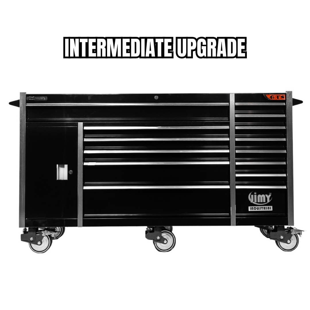 The 14 drawer mega mechanics tool kit from Jimy Tools offers a wide range of tools for the trade’s person. The kit consists of a 14 drawer heavy duty roller cabinet that has been powder coated with a tough industrial finish, 1.2mm thick steel, fully lockable with rear internal locking system and ball bearing slide drawers with twin slides on the deeper drawers. Included are metric 4mm – 32mm and SAE 5/32” – 1-1/4” sockets and a full complement of 1/4”, 3/8” and 1/2” drive socket accessories including ratchets, breaker bars, extensions bars from 50mm up to 900mm long plus metric and SAE impact sockets. There are ring open end ratchet and standard spanners in both metric and SAE, screwdrivers, pliers and even a 1/2” drive air impact wrench for the complete list of contents please check out the table below. With the high density foam drawer inserts you can easily see if you have left a tool on the job.